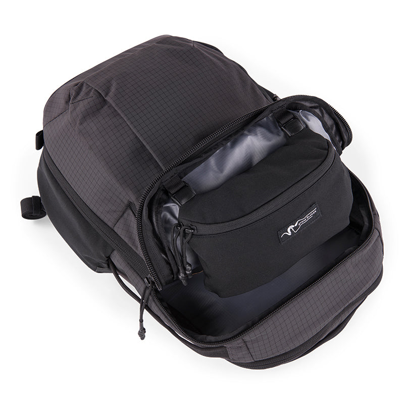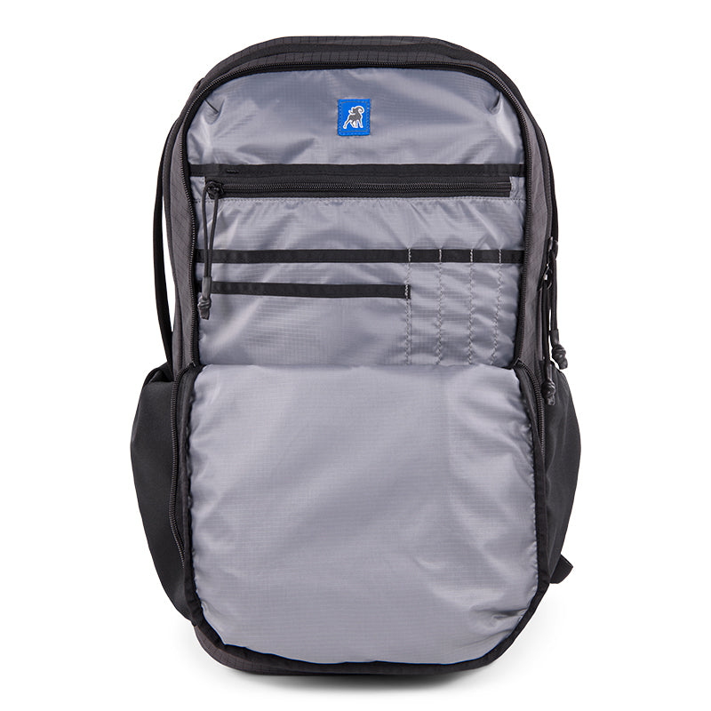 The fully padded laptop pocket protects your computer or tablet while internal attachment points secure the included and removable Camp Pocket for added organization. Front pockets provide easy access to frequently used items, and the hidden lumbar pocket offers discreet storage for your passport or concealed carry. Dual side stretch pockets hold a large water bottle and a smaller insulated cup. The internal organization panel features a zippered security pocket, and a convenient clip holds your keys within easy reach.