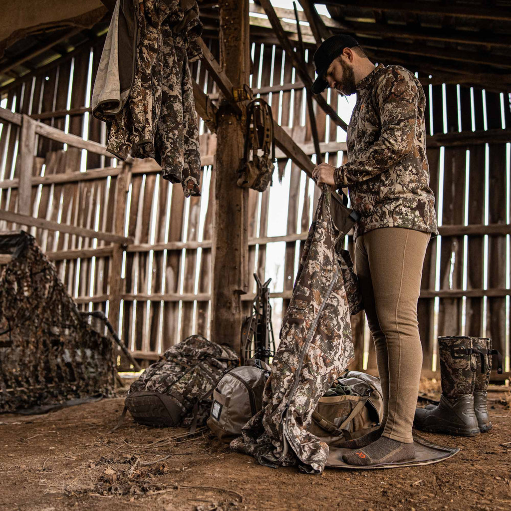 Our Furnace EXP 350 Merino-X fabric incorporates a brushed (or fleeced) backside to our high-loft, interlock knits to provide super-charged insulation without added weight. Adding this to the silent, odor-free benefits of merino wool, the Furnace merino is the hands-down choice for cold-weather hunts.