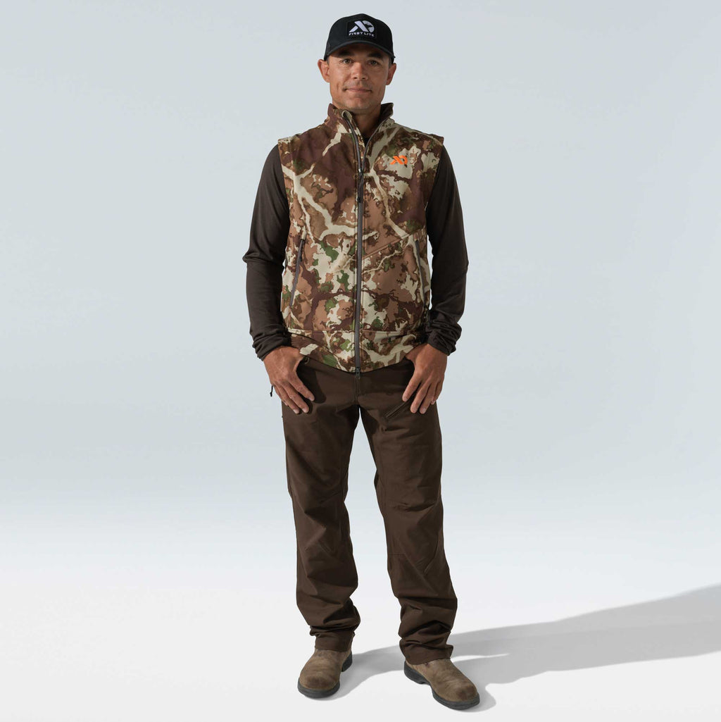 The Suppressor Vest, with its windproof, durable, and stretchy softshell material package, brings balanced versatility to your layering system. The vest uses a shut-down face fabric to lock in vital core heat while providing ample storage options with its strategically placed hand pockets that sit above your pack belt. Backed with a soft and plush interior for all-day comfort, the Suppressor Vest integrates perfectly into your layering kit from the waning days of summer through the frigid, windy days of winter.